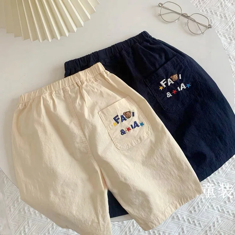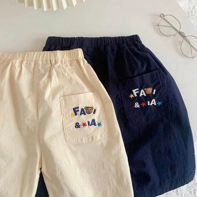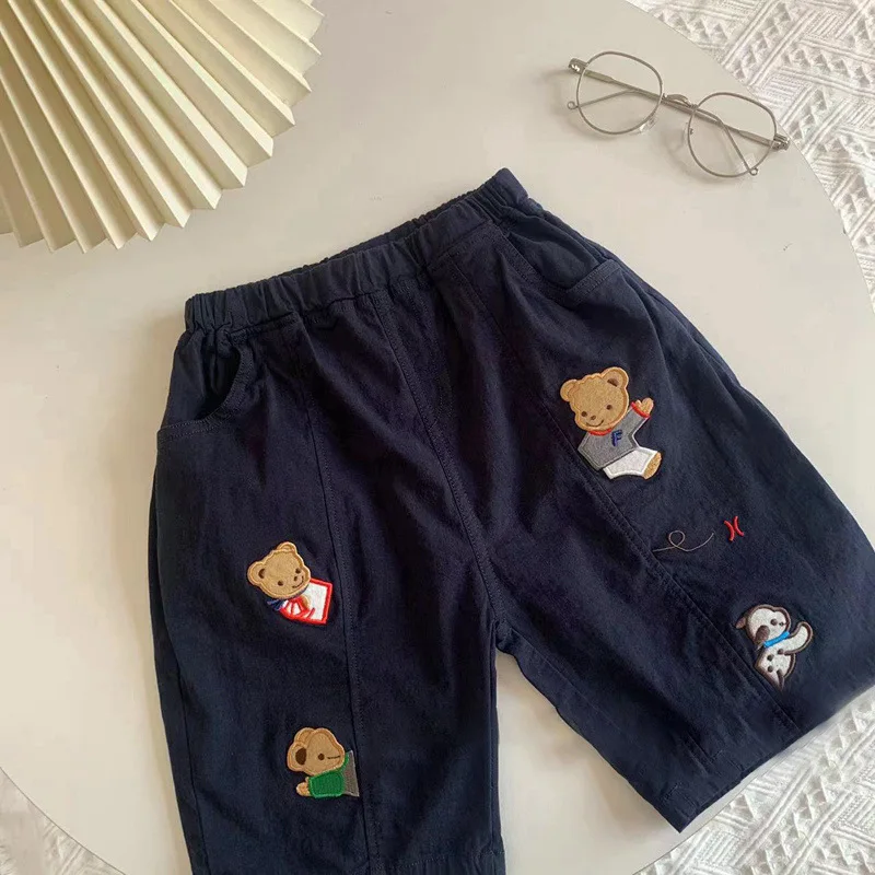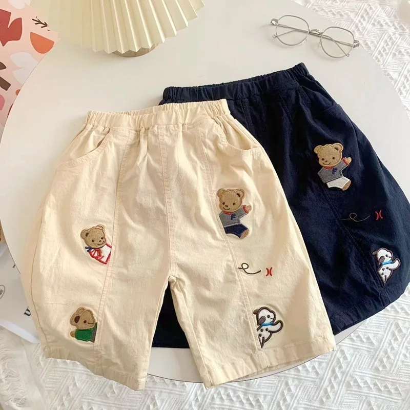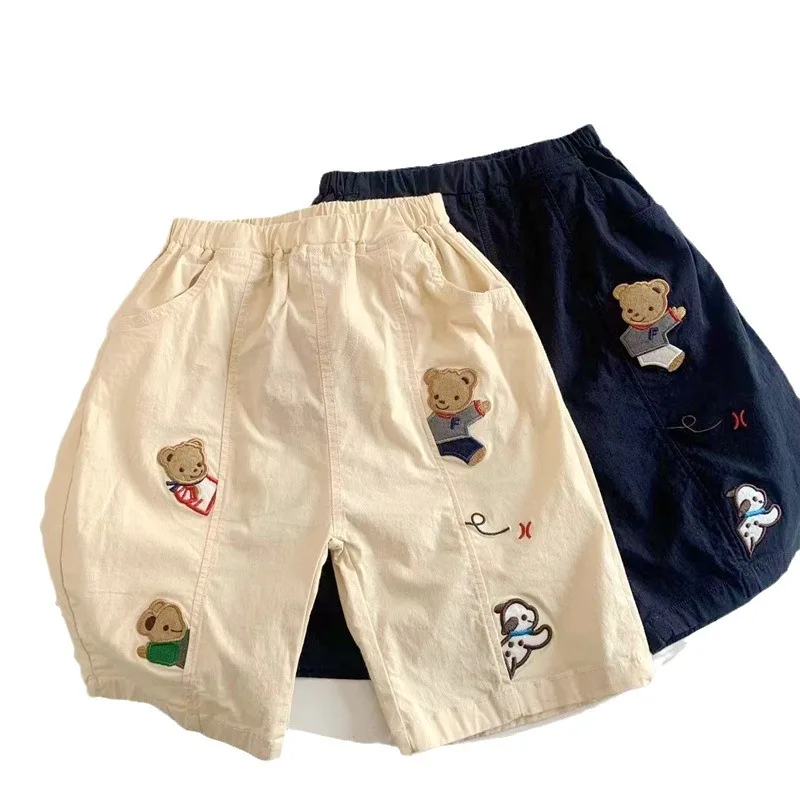 2025 New Cartoon Cute Childrens Boy Shorts Summer Fun Embroidery Closed Casual Pants Childrens Woven Shorts For 1-7 Years
