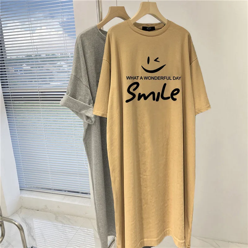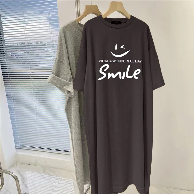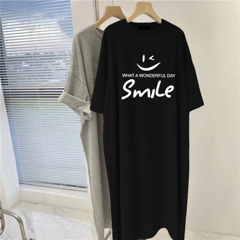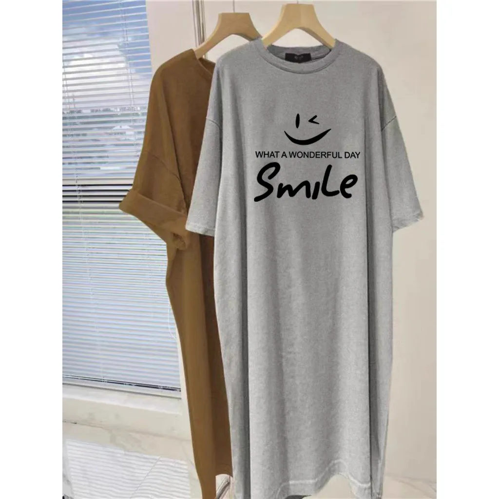 2025 New Short Sleeved Dress Women Fashion Korean Style Oversized Loose Round Neck Dress