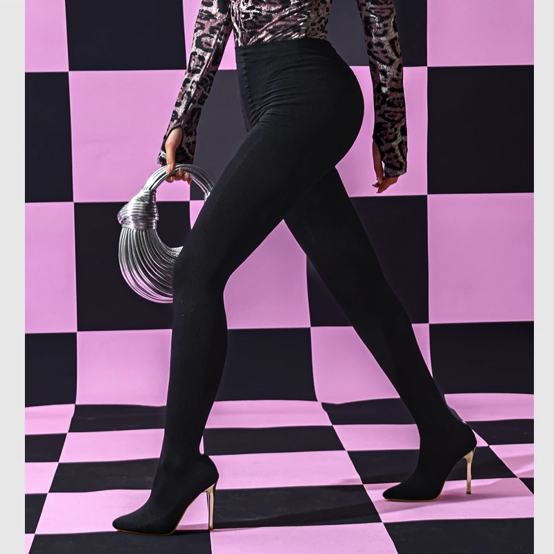 Aneikeh Sexy Stretch Fabric Over The Knee Boots Women Fashion Pantyhos street Thigh High Shoes Party Nightclub Stripper Heels
