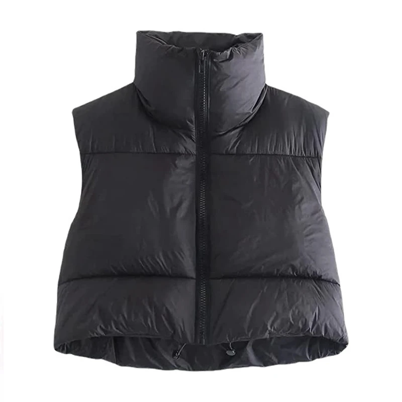 Autumn And Winter Women’s Short Cotton Down Vest Short Stand-up Collar Warm Sleeveless Quilted Vest Outdoor Travel Jacket Tops