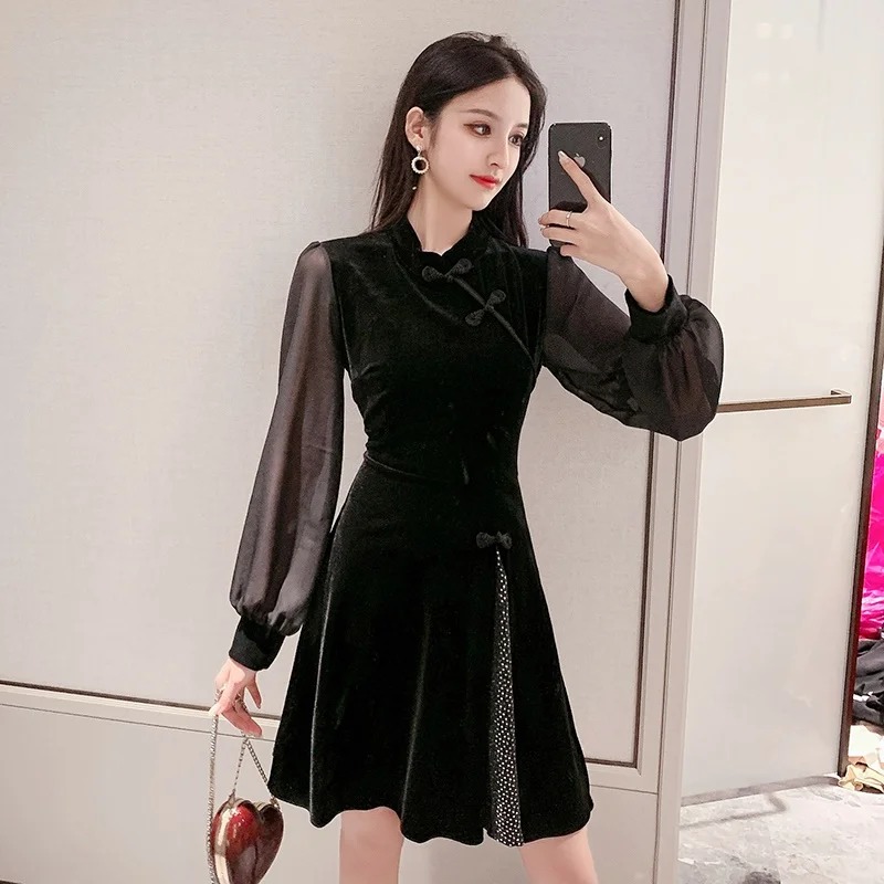 This black elegant Qipao dress blends timeless Chinese cheongsam charm with a modern short Japanese-inspired silhouette. Designed for women who love oriental fashion, this dress highlights grace, femininity, and cultural elegance.