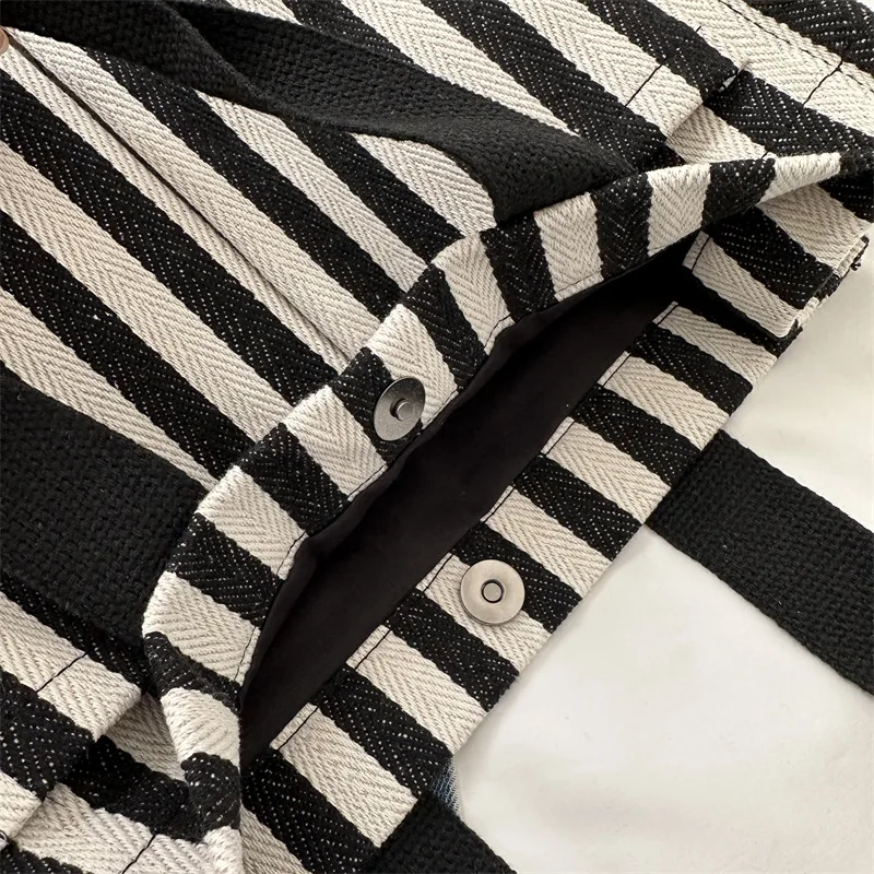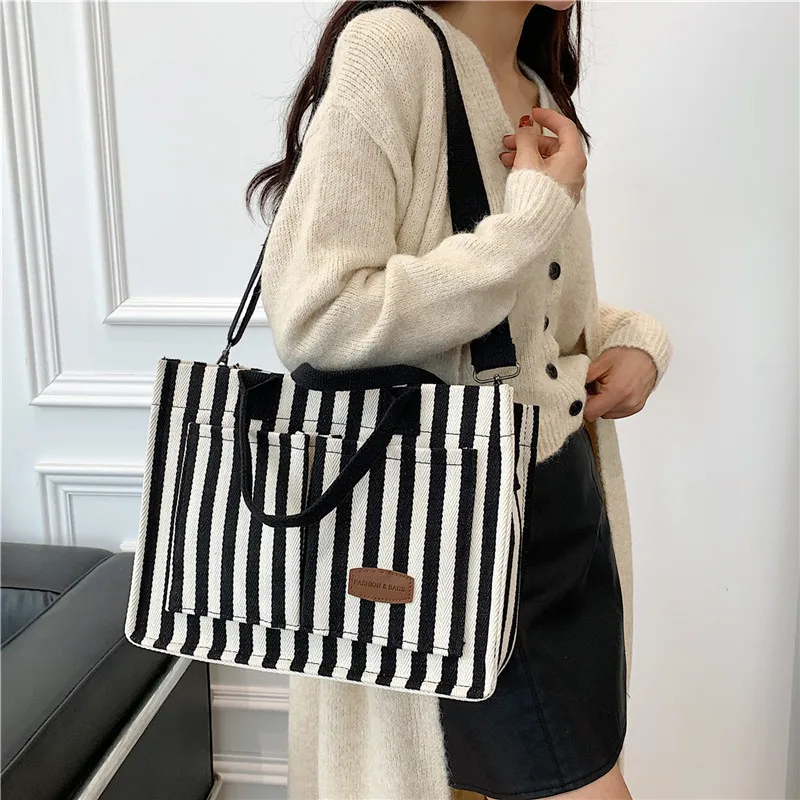 Cool Street Handbag, Large Capacity Women’s Shoulder Bag, Trendy Striped Canvas Crossbody Bag, Fashion Travel Shopping Tote Bag