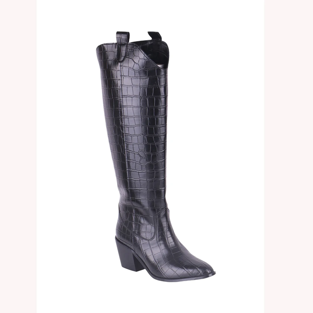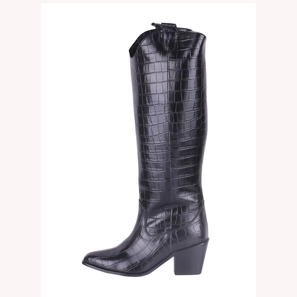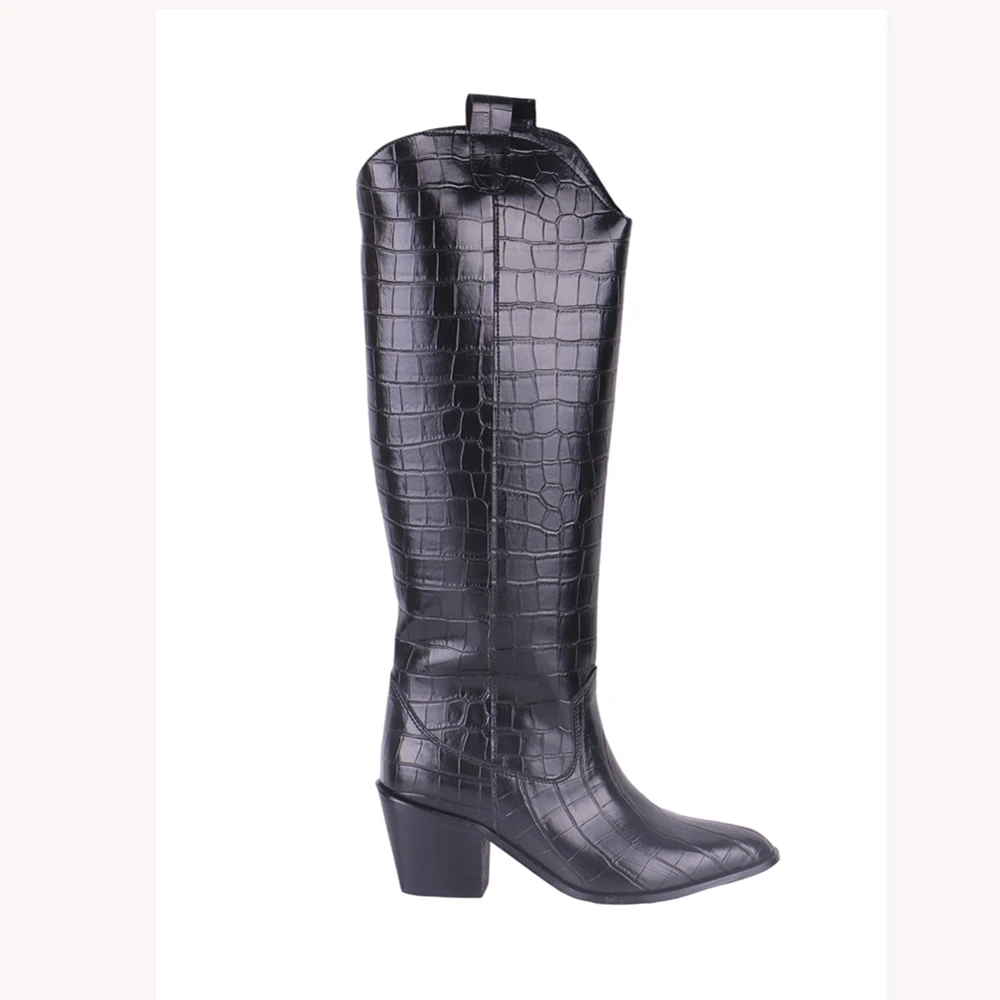 Crocodile Boots Women 2024 Autumn/Winter New Fashionable Knee High Heels Thick Heels Dress Party Women’s Boots