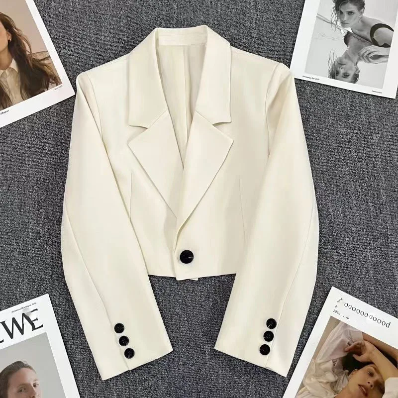 Cropped Blazers for Women 2024 New Korean Fashion Long Sleeve Button Up Suit Jacket Woman Elegant All Match Office Blazer Female