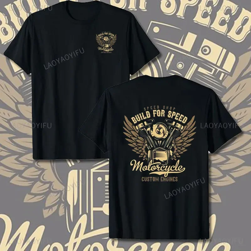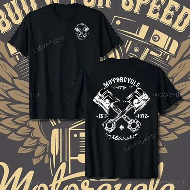 Crossed Pistons Mechanic Garage Engine Graphic T-shirt Summer Cool Men Cotton Tee Shirt All-Match Hipster Streetwear Man T-shirt