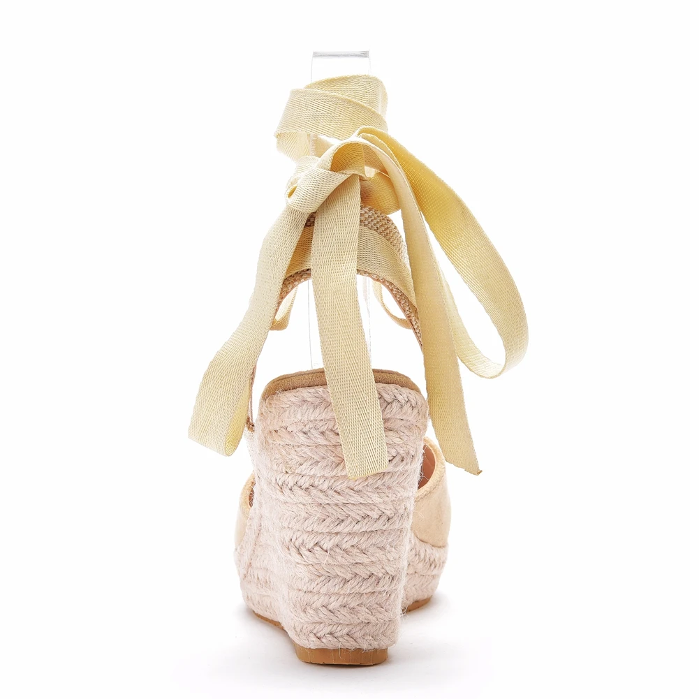 Crystal Queen Women’s Wedges Espadrilles Sandals Summer Ankle Cross Strap Gladiator Casual Hemp Canvas Pumps Shoes