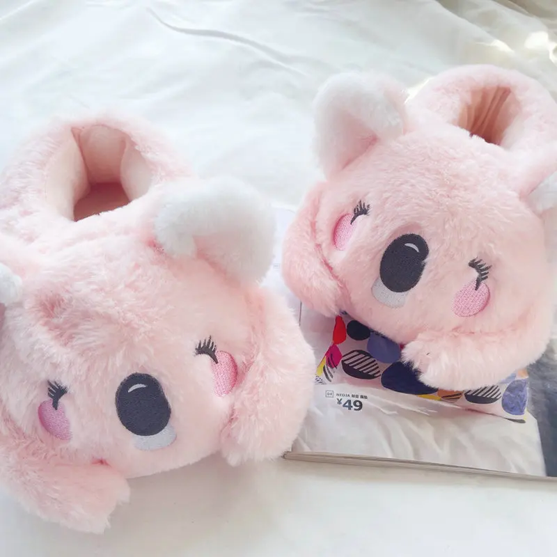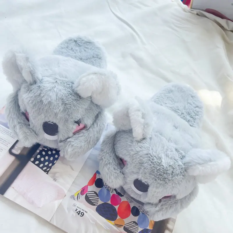 Cute Pink Gray Koala Cartoon Animal Plush Slippers Female Winter Warm Koala Home Woman Slipper