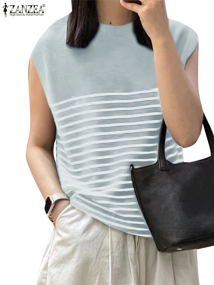 Fashion Women Sleeveless OL Blouse Summer Office Shirt 2024 ZANZEA Casual Stripe Tanks Tops Female Elegant Work Blusas Chemise
