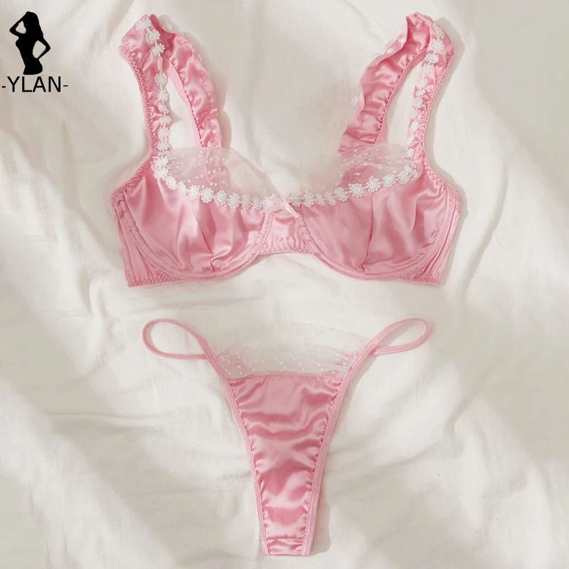 Fine Satin Lingerie Sexy Underwear 2 Piece Women Set Lingerie Seamless Bra Brief Sets Lace Patchwork Erotic Lingerie Intimate