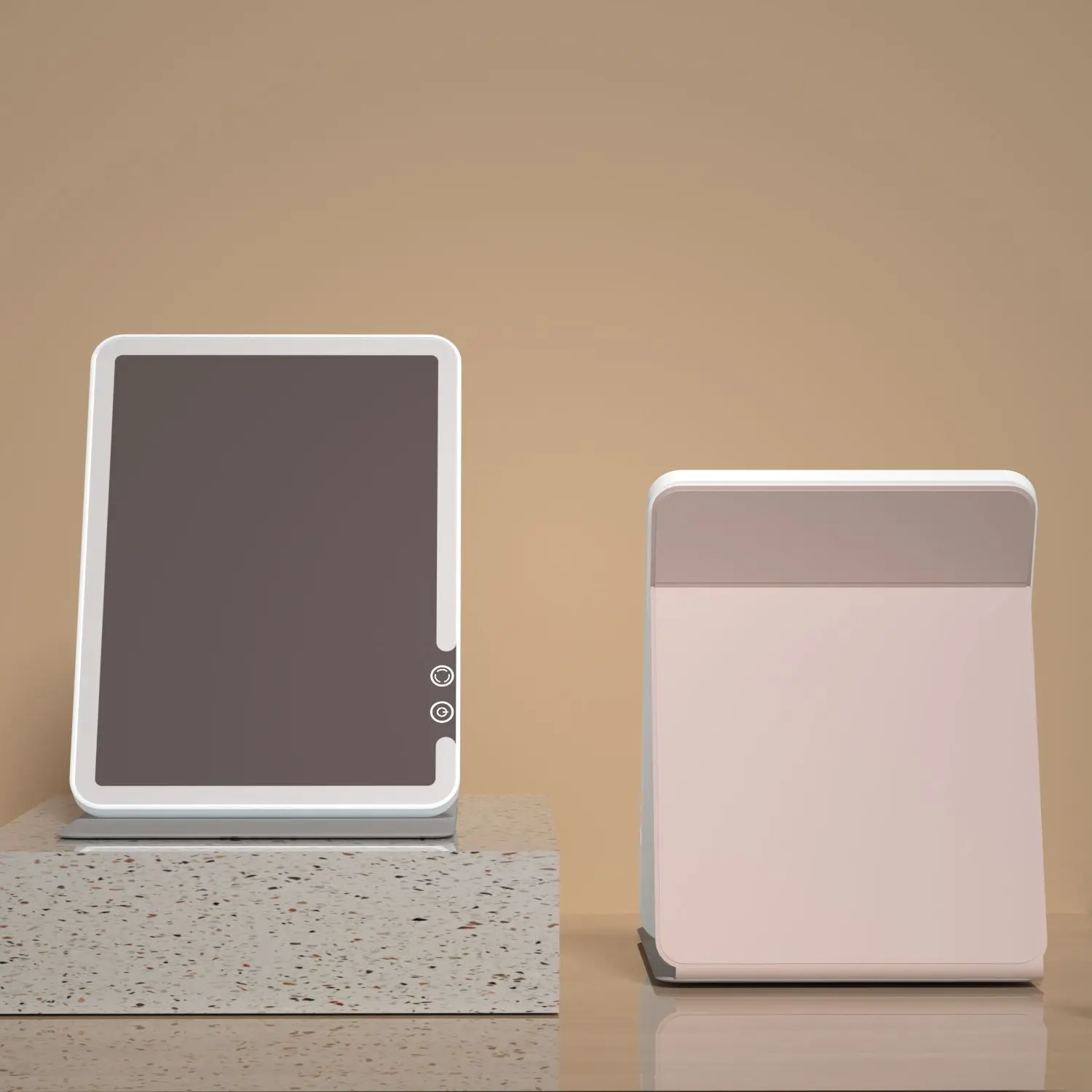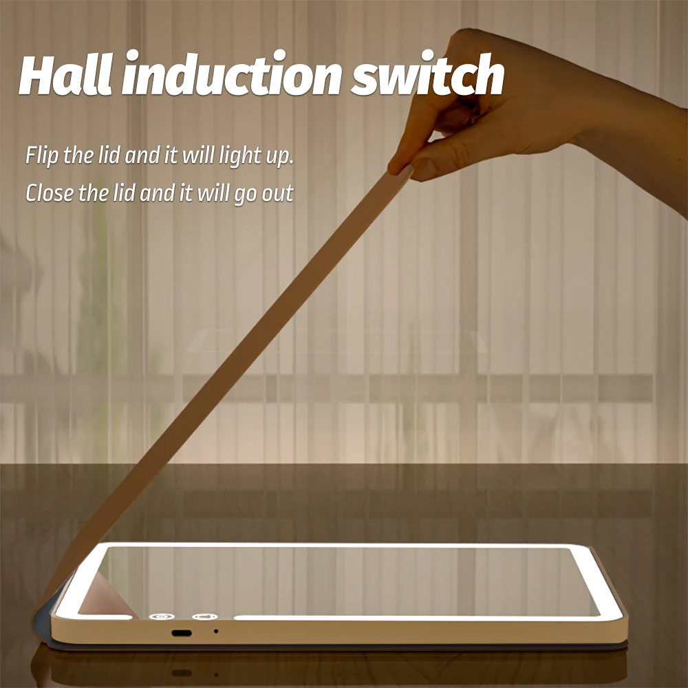 Foldable Vanity Mirror Tabletop LED Folding Ultra Cosmetic Vanity Mirror Touch Screen Compact Dimmable Travel Beauty Mirror