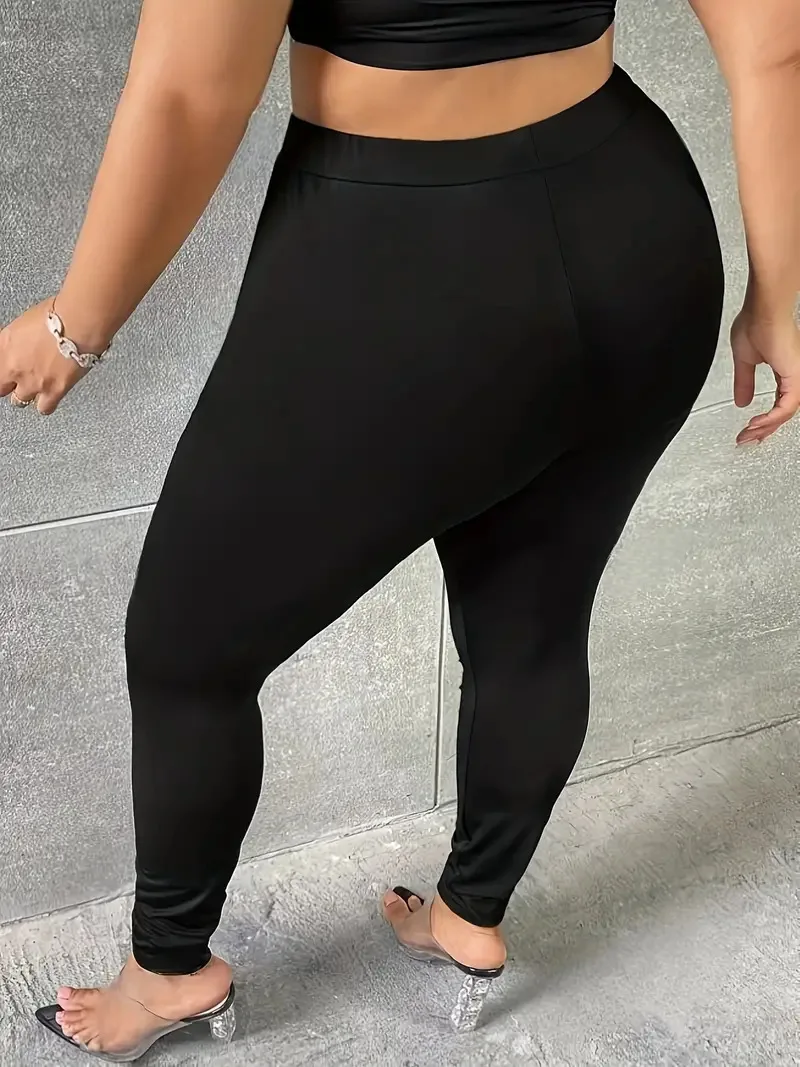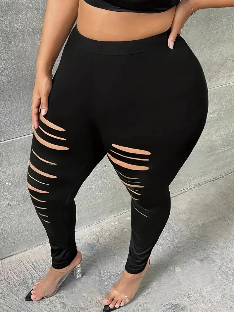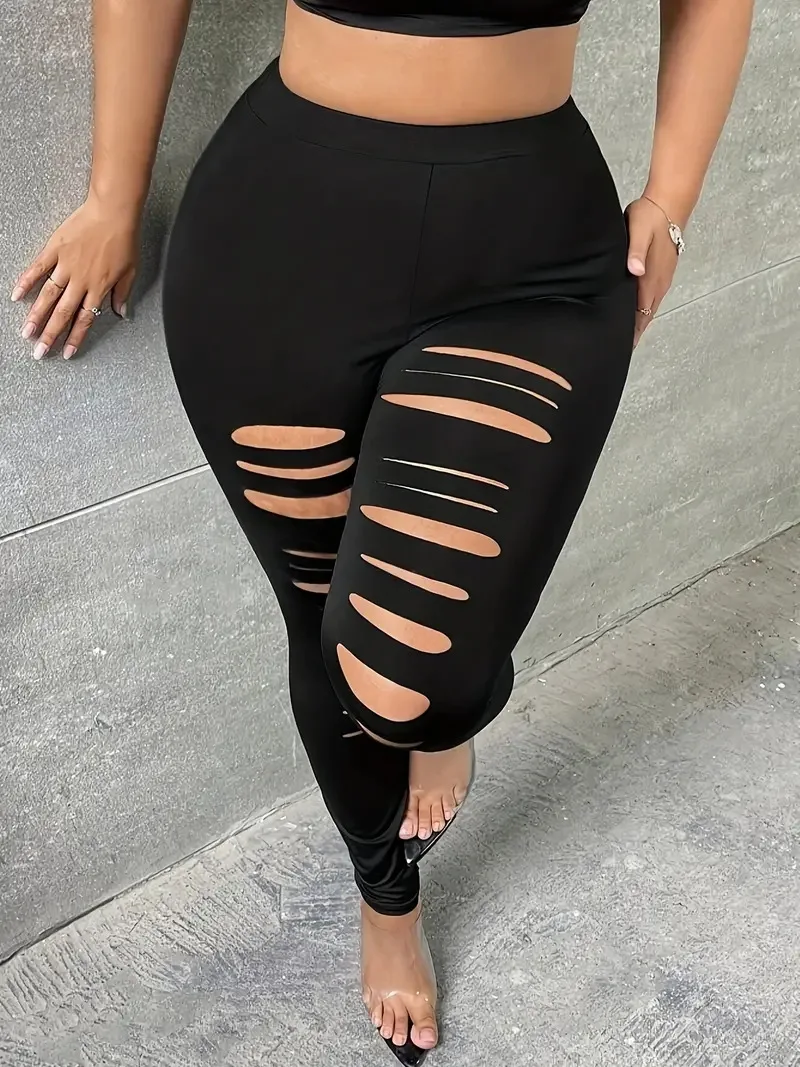 GIBSIE Plus Size Fashion Black Ripped Leggings For Women Spring Summer Street Casual Mid Waisted Stretch Slim Pencil Pants