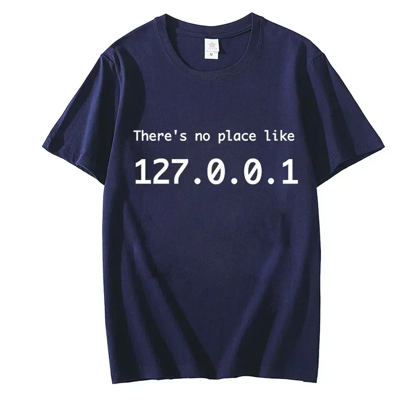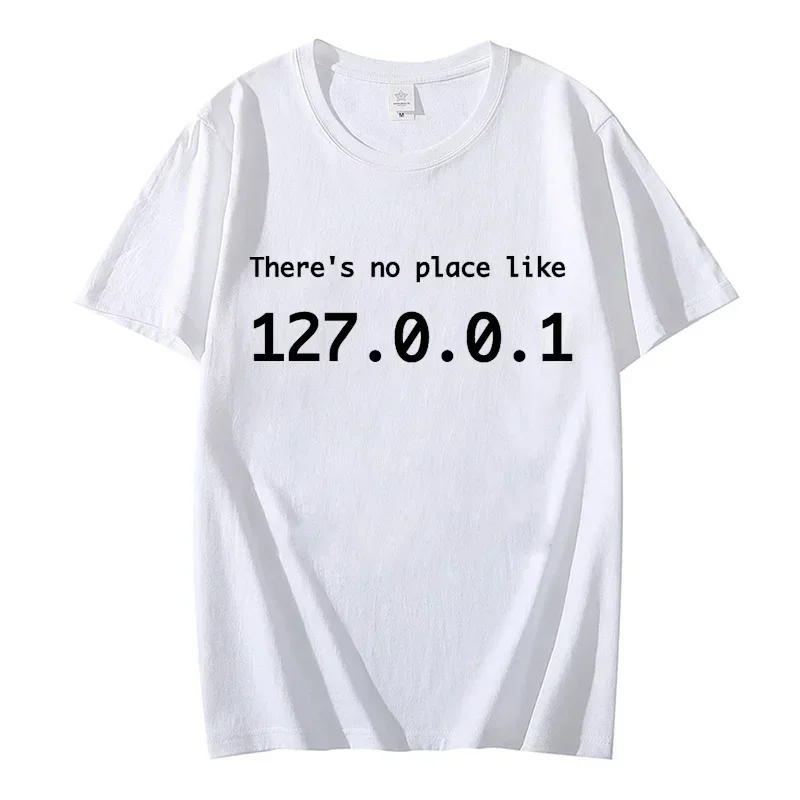 IP Address Graphic Tee Men There Is No Place Like 127.0.0.1 Computer Comedy Novelty Funny TShirt Programmer Geek Shirt Men Tees