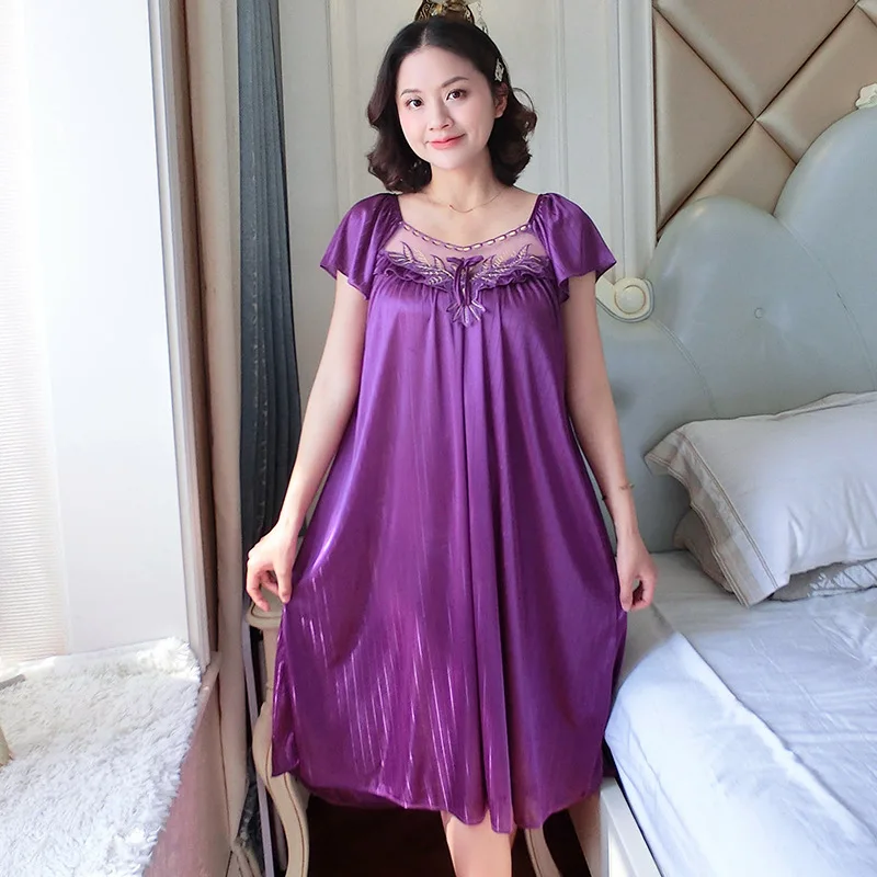 Ladies Nightdress Sexy Ice Lace Large Size Solid Color Flower Pajamas Thin Short-sleeved Lace Skirt Night Dress Women Dress
