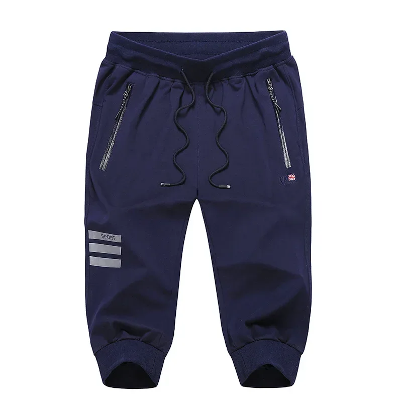 Long Three Quarter Men’s Shorts Cotton Elastic Summer Bermuda Male 3/4 Calf Big Size Plus Large 6XL 7XL 8XL 9XL Cuff Below Knee