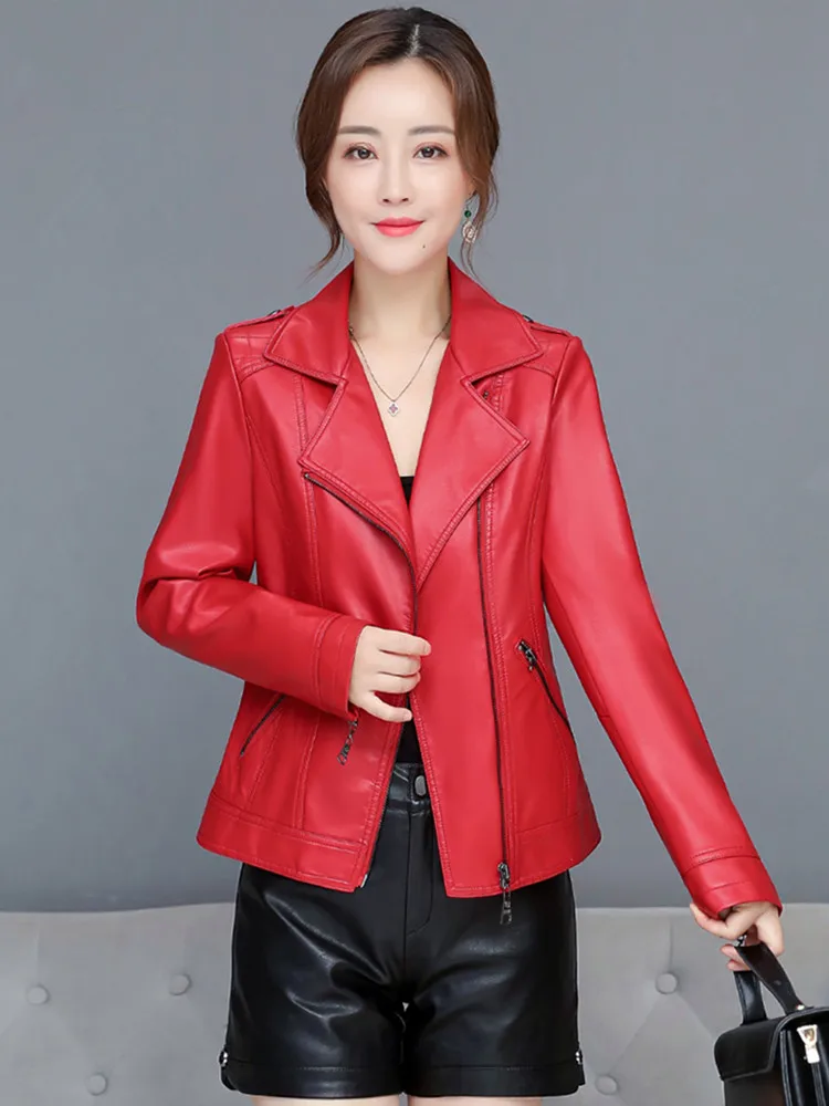 M-6XL Women Split Leather Jacket Spring Autumn New Fashion Casual Tops Outerwear Turn-down Collar Zipper Slim Short Coat Female