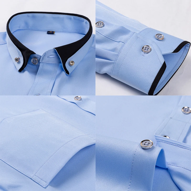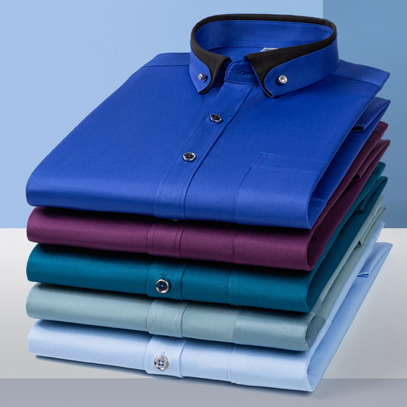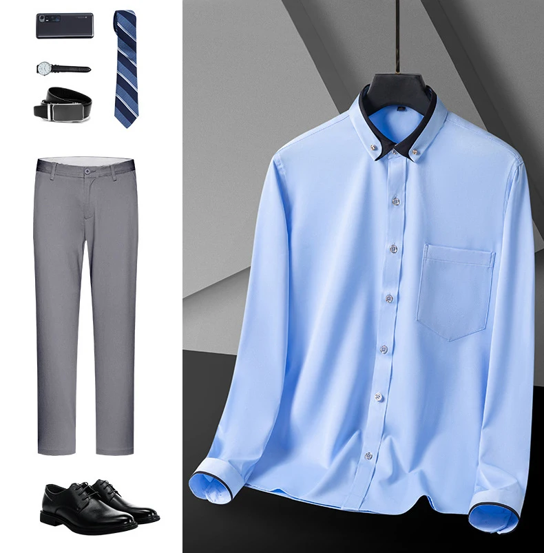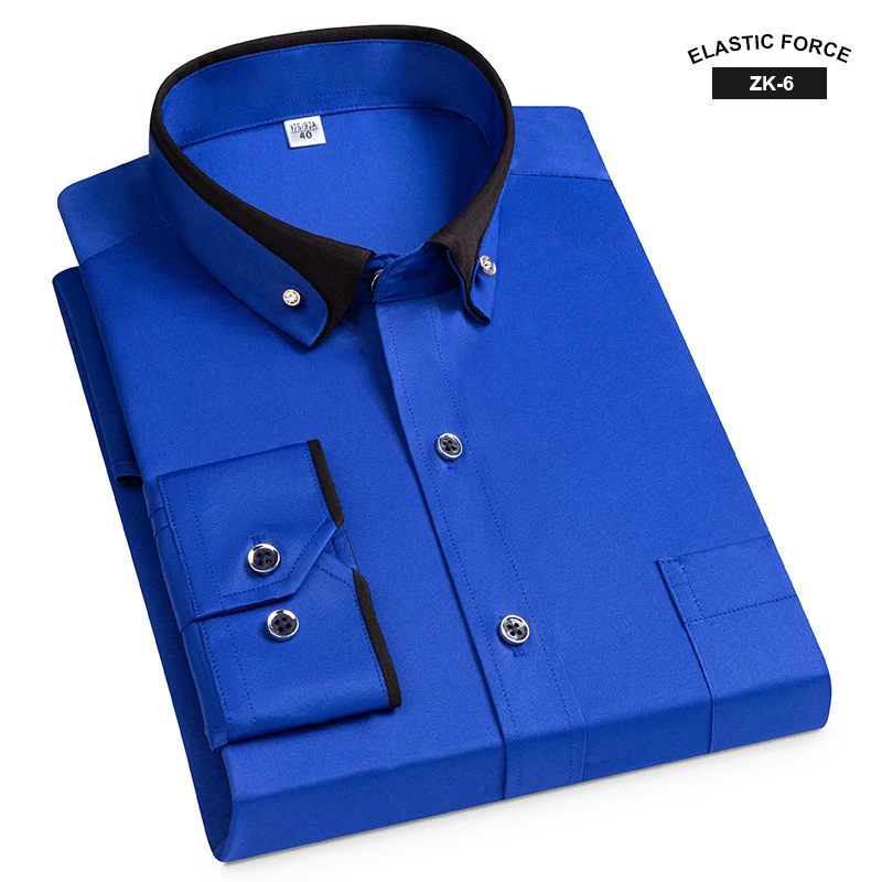 New Fashion Spring Elastic Non-iron Long-sleeved Shirt Men’s Youth Crystal Button Patchwork Collar Not Cotton Business Shirt Men