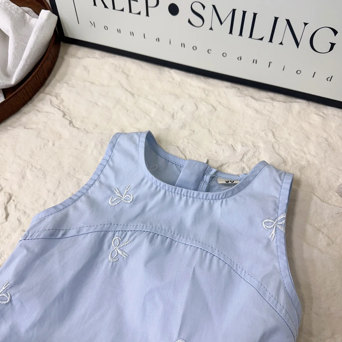 New girls’ simple sleeveless vest dress summer new 2025 baby girl shirt bow print dress