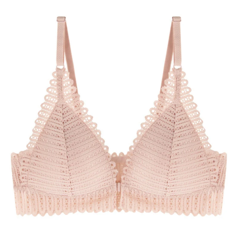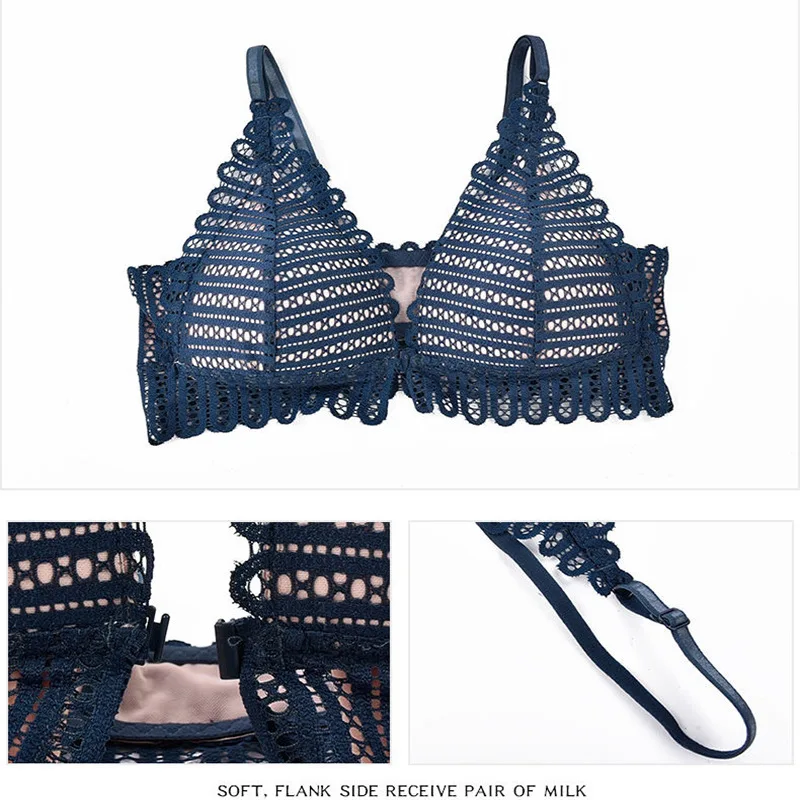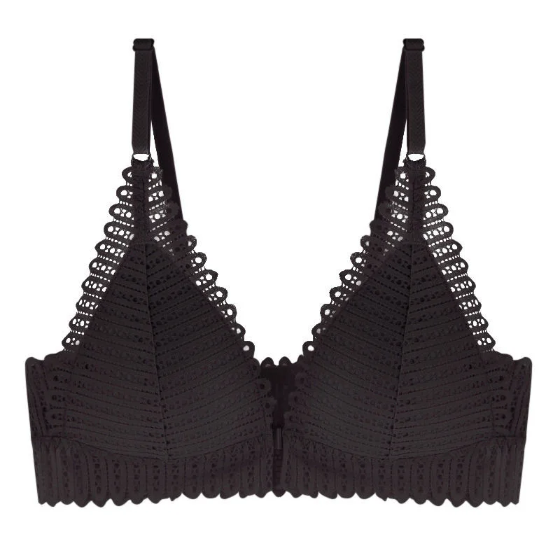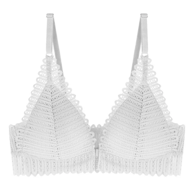 New Women’s Bra French Triangle Cup Underwear Women’s Thin Sexy Lace Beautiful Back Buckle Small Bra Gathering No Steel Ring Bra