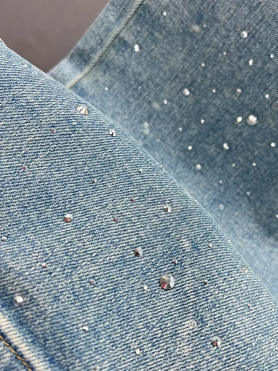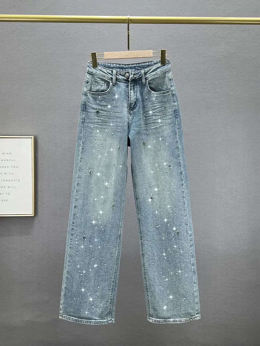 Rhinestone XINGX Pendant Design High Waist Wash Jeans Women’s Summer Loose Slimming and All-Matching Straight-Leg Pants