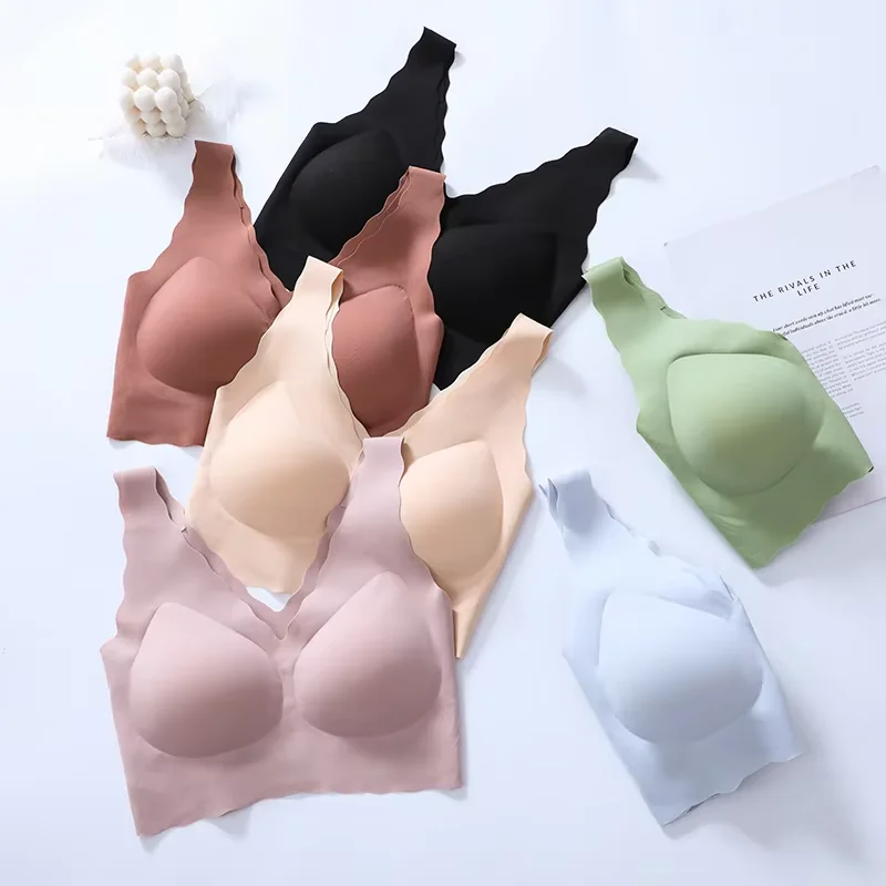 Small Wave Edge Sports Leisure Comfortable Women Underwear Seamless No Steel Ring Gathered Latex Woman Bra