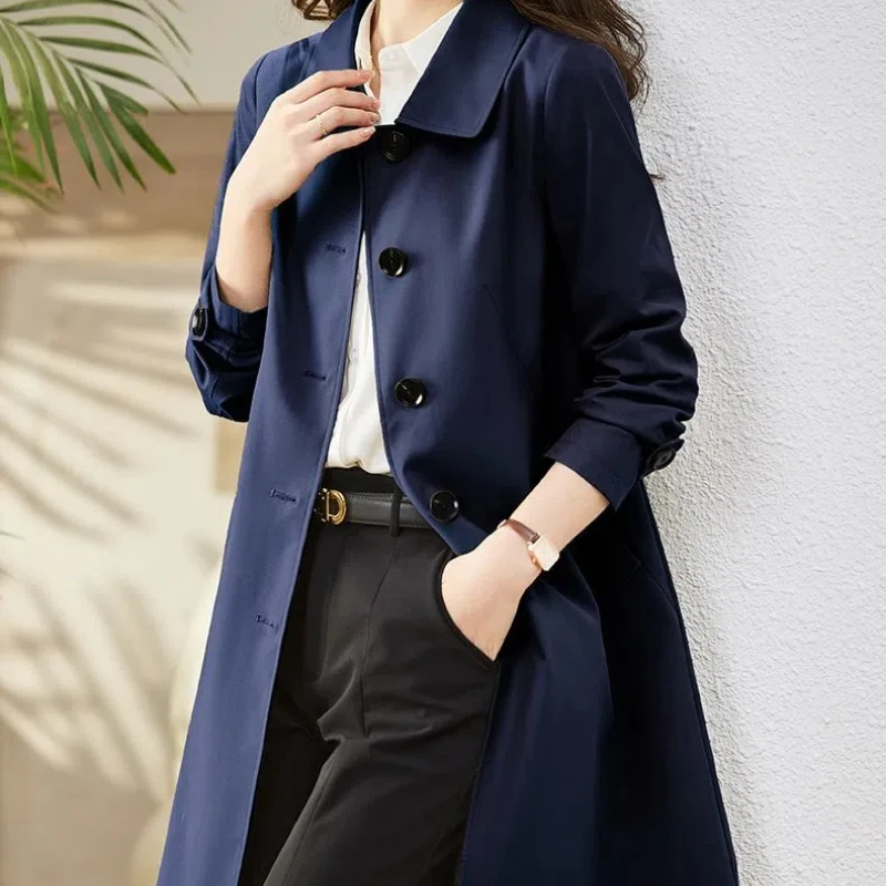 Spring Autumn Fashion Turn-down Collar Long Sleeve Solid Trench Women’s Clothing Korean Button Simplicity Trend All-match Tops