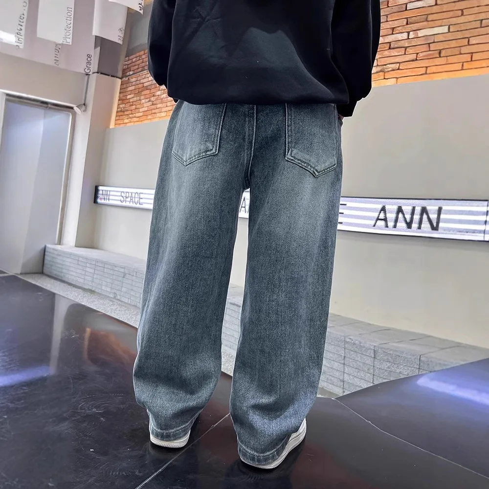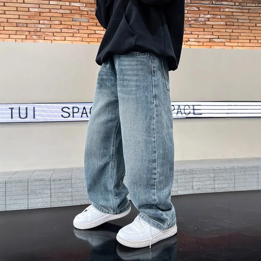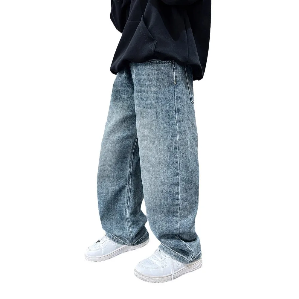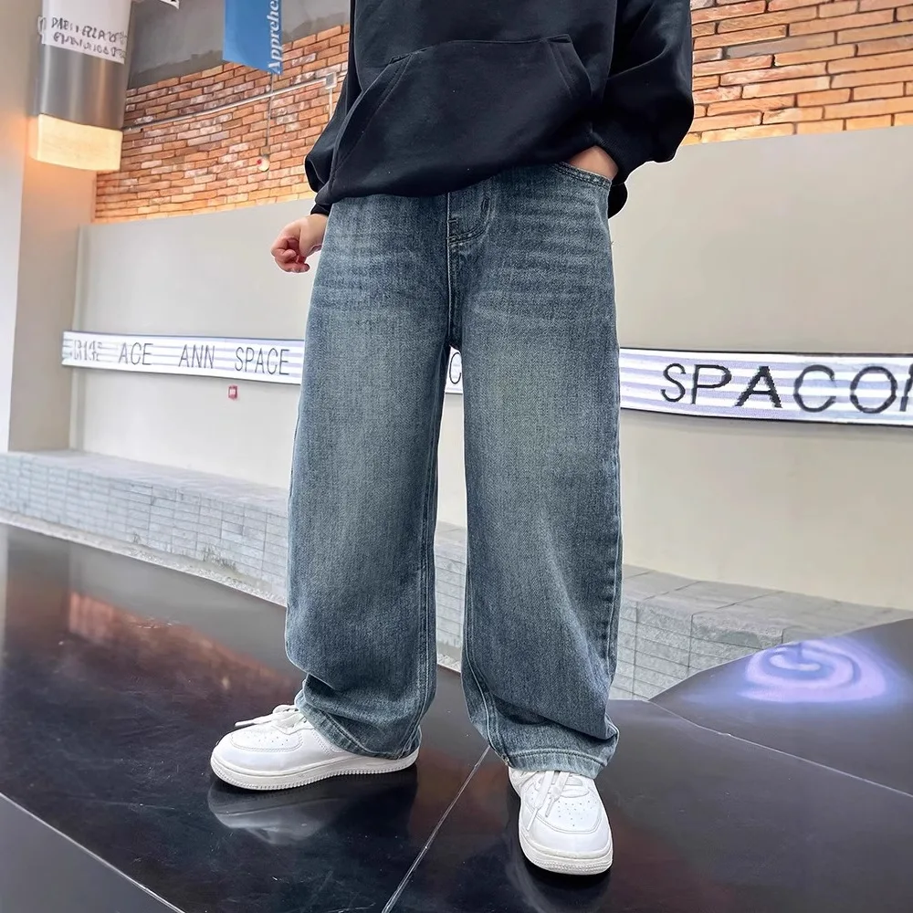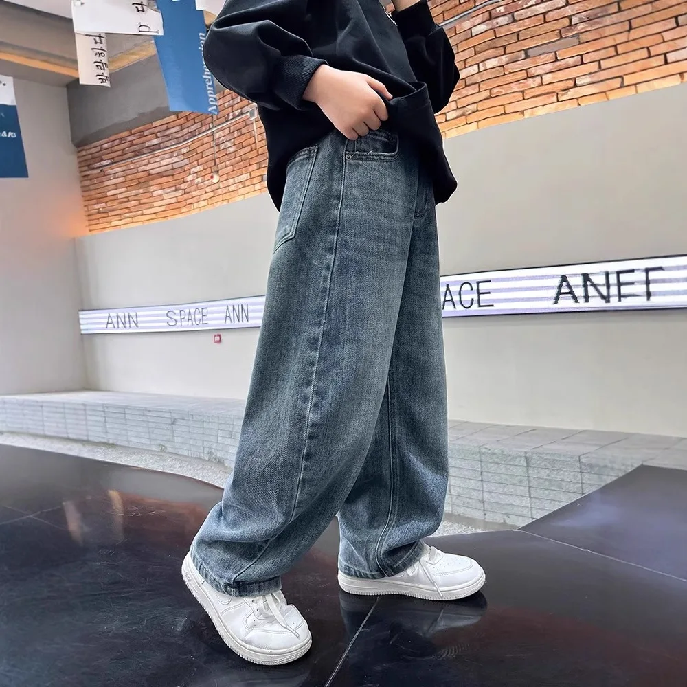 Spring Boys Jeans Pants Kids boys Wide Leg Straight Trousers Loose-Fit Casual Trousers Childrens Trendy Sweatpants Pant 5-14Y