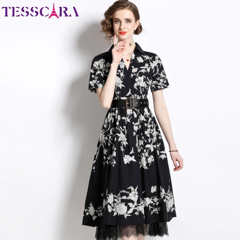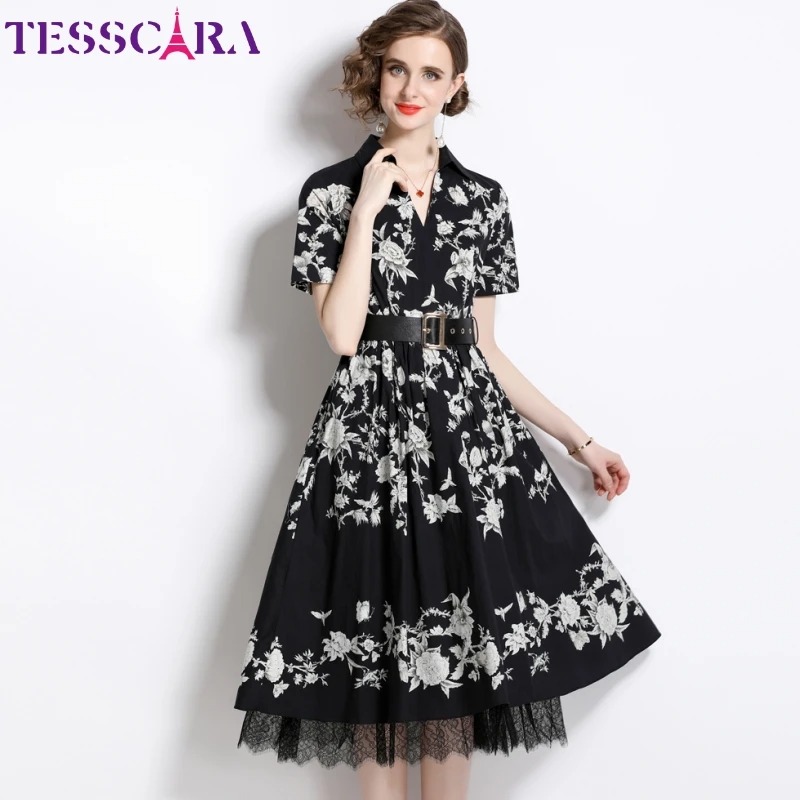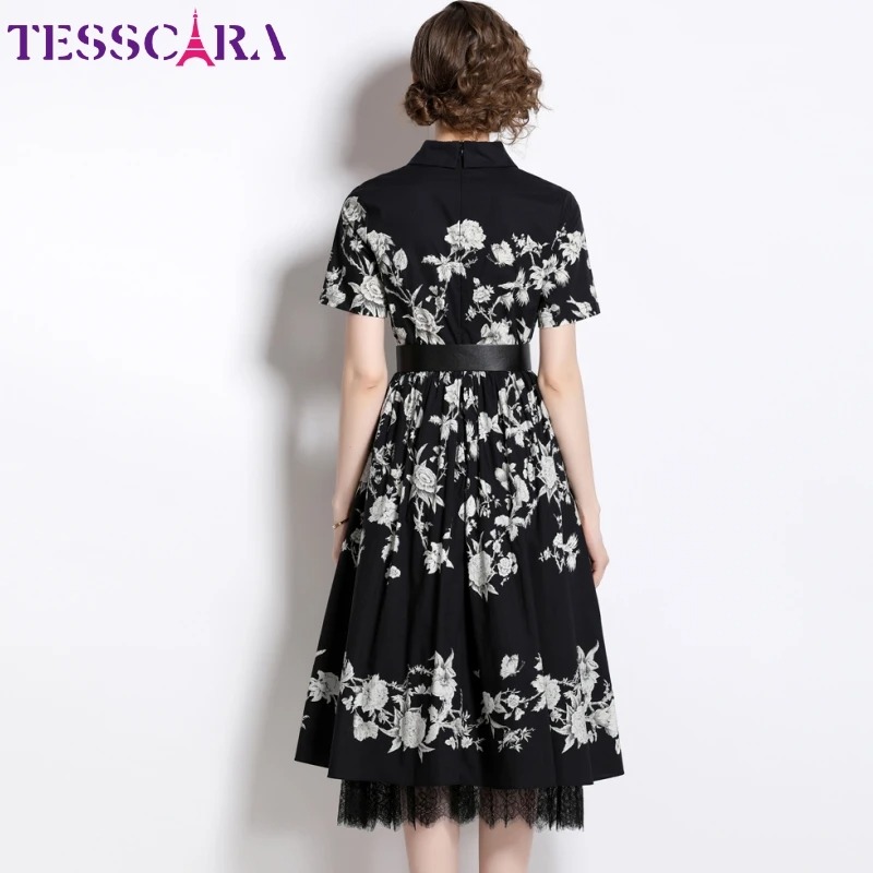TESSCARA Women Summer Elegant Long Cocktail Party Dress Vintage Lace A Line Designer Gown