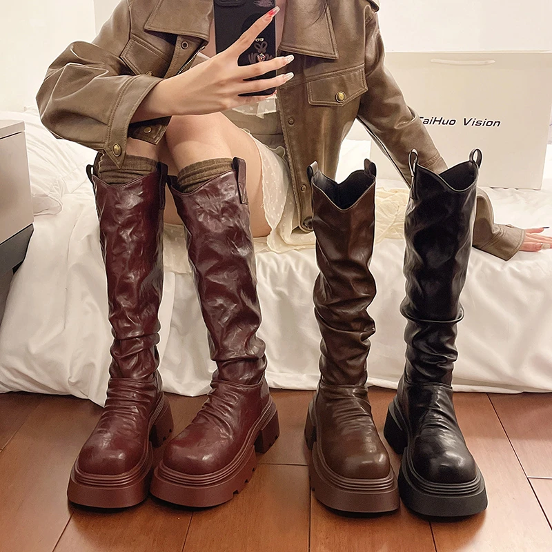 Winter Short Plush Women Knee High Boots Fashion Slip On Knight Long Booties Ladies Casaul Platform Heels Botas Mujer
