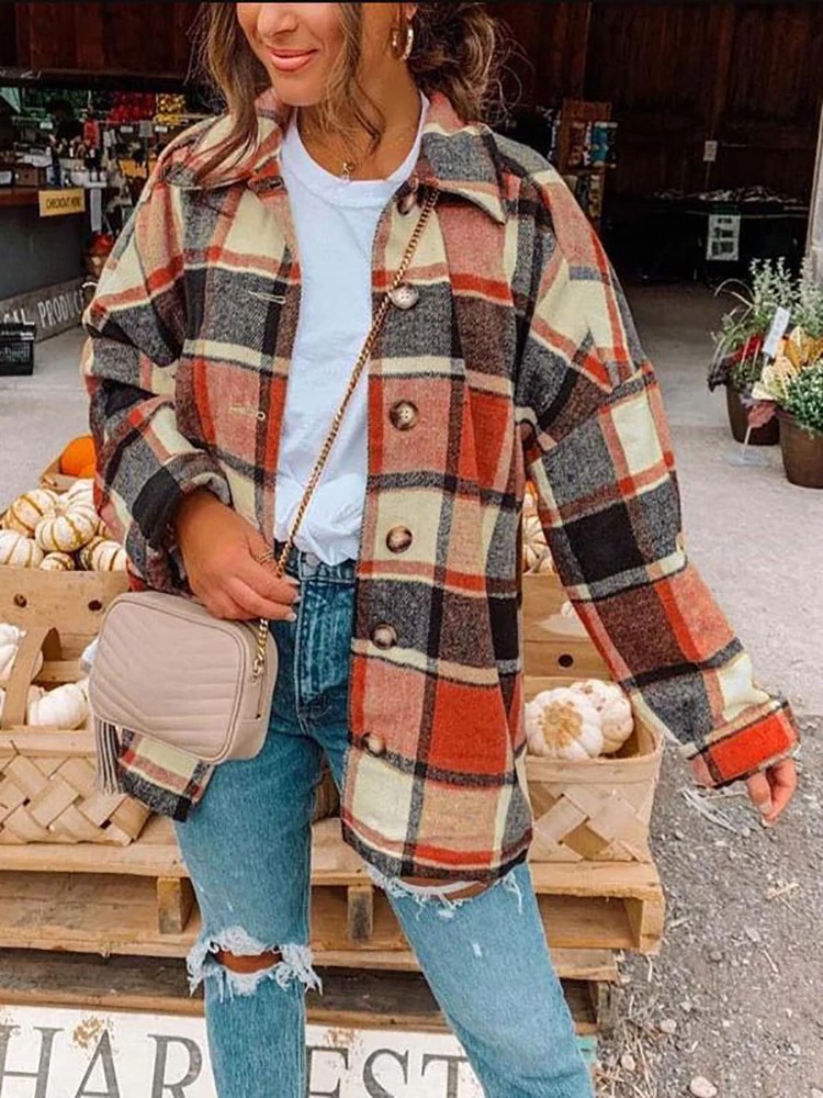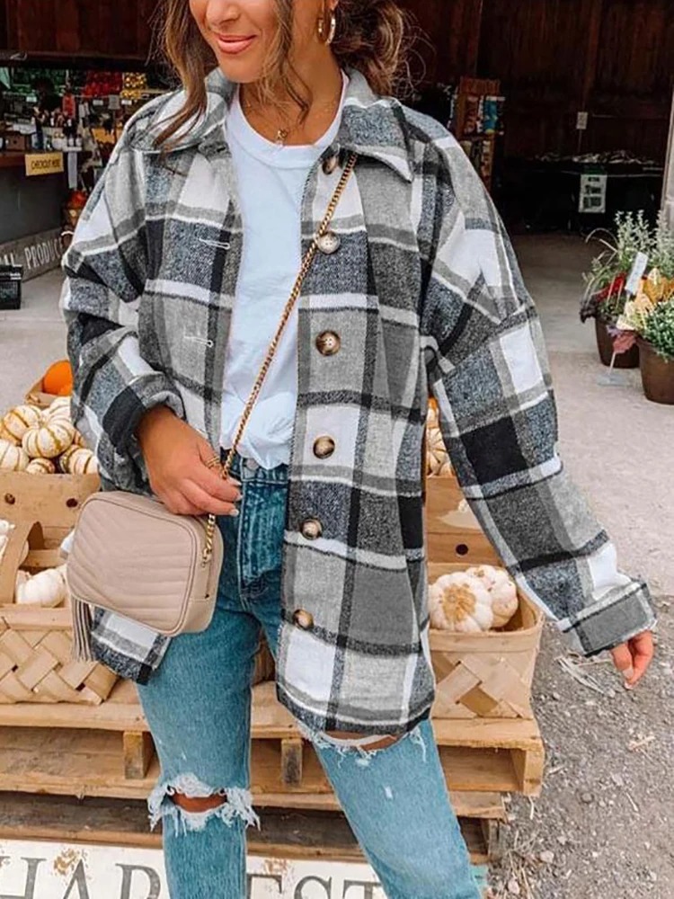 Women Oversized Plaid Shirt