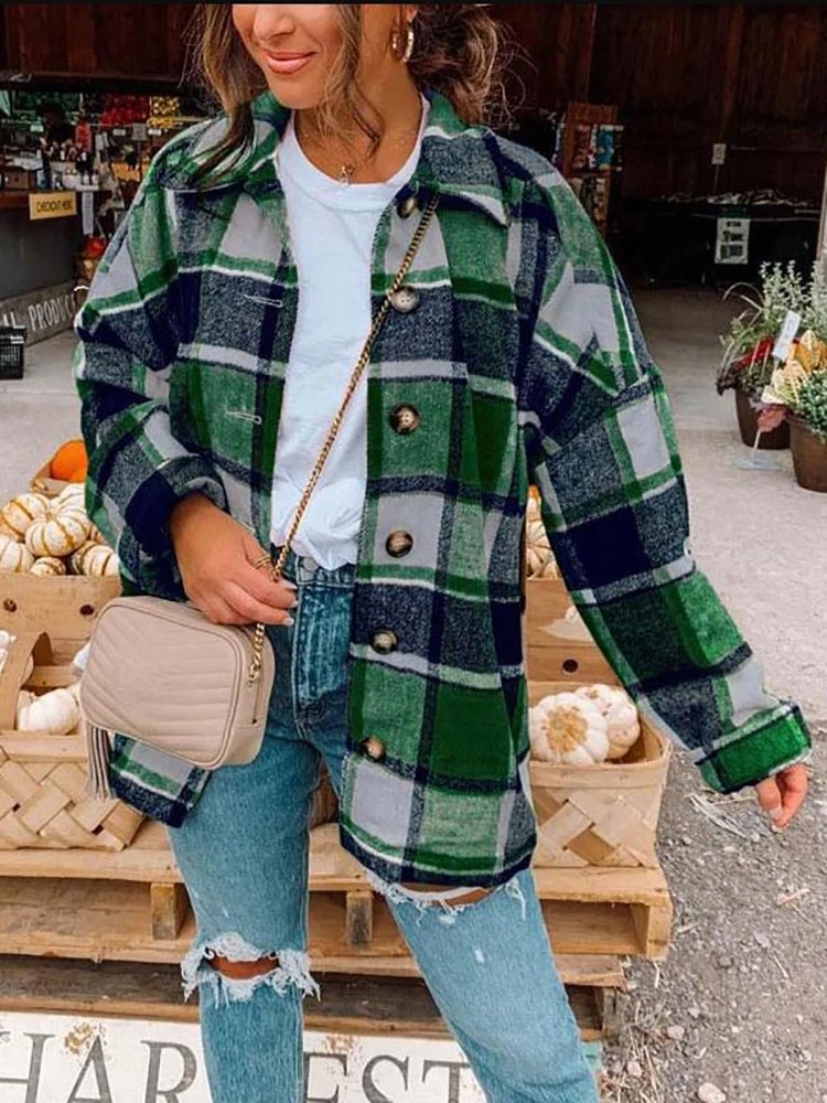 This spring women’s oversized plaid shirt features a classic checkered vintage design with a loose and relaxed fit. Made for comfort and effortless style, it works perfectly as a casual blouse, layering shirt, or lightweight jacket. The long sleeves and button-up front make it ideal for daily wear, travel, and street style looks.