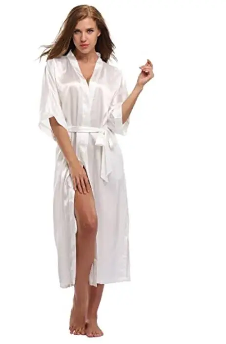 Women Silk Satin Long Wedding Bride Bridesmaid Robe Kimono Robe Feminino Bath Robe Large Size XXXL Peignoir Femme Sexy Bathrobe