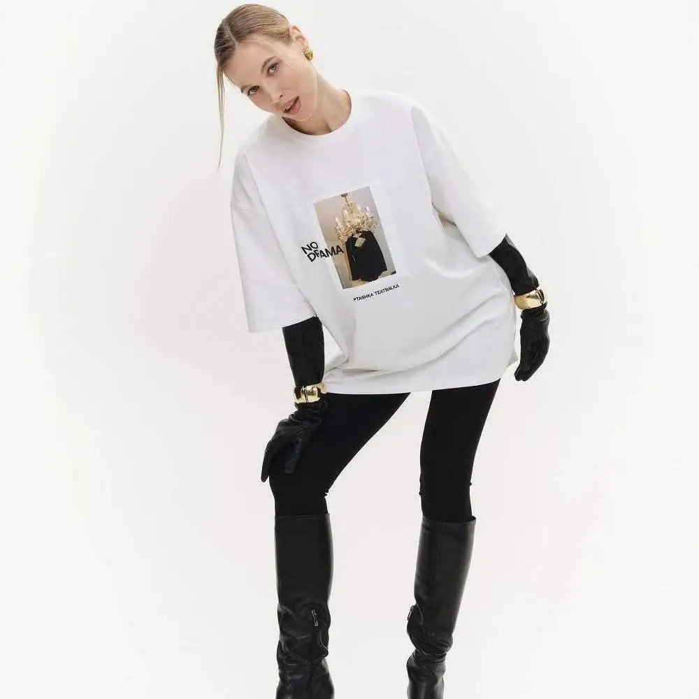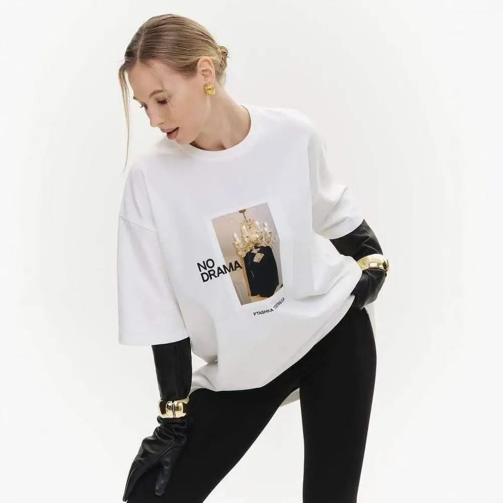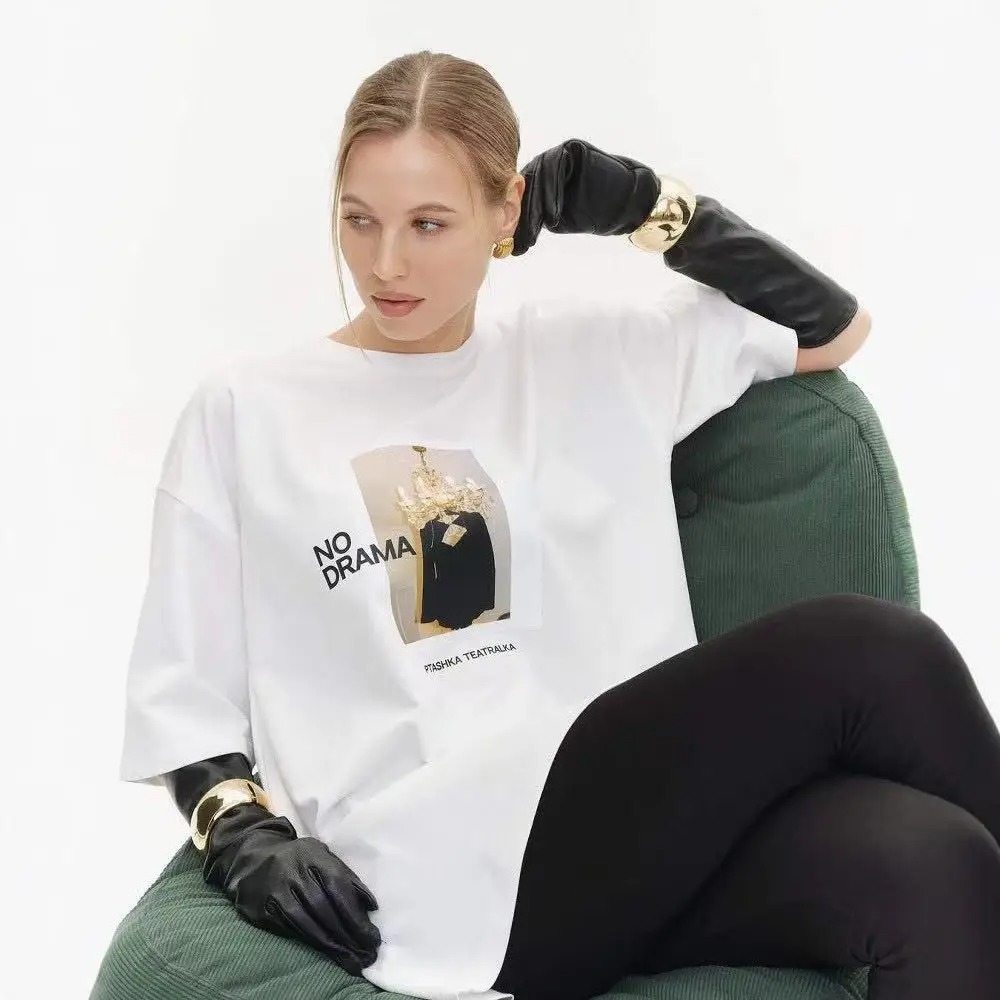 Women Y2K White T-Shirt Summer European American Print Short Sleeve Fashion Casual Top