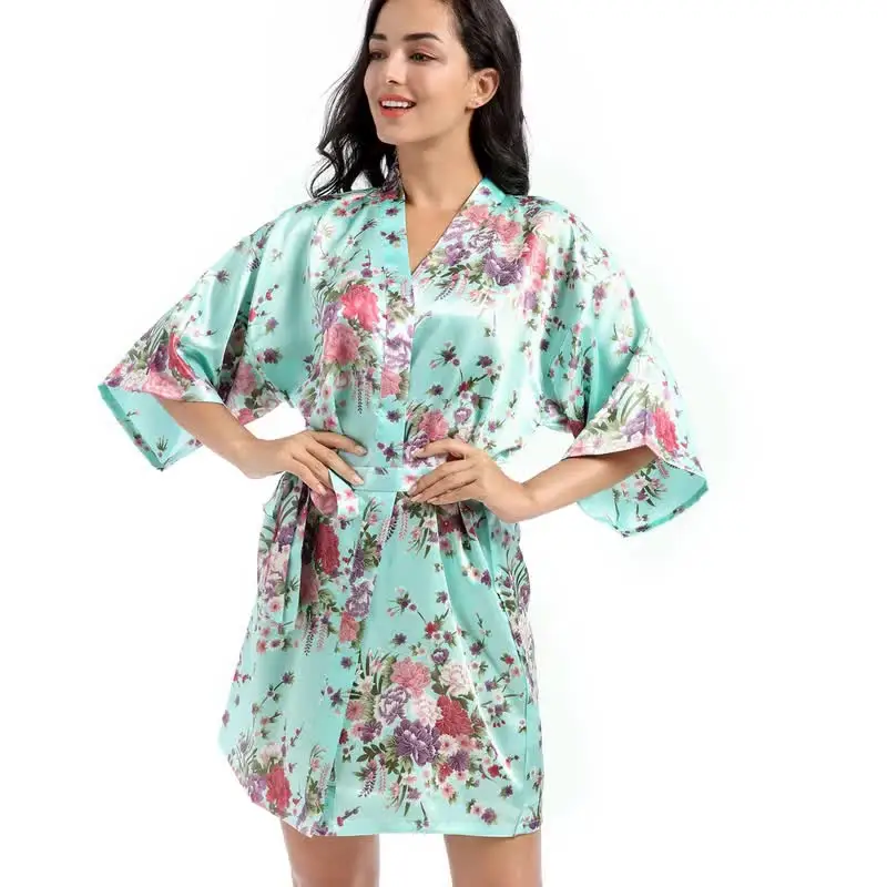 Women’s Floral Bride Bridesmaids Robe Satin Wedding Kimono Bridal Dressing Gown Sleepwear