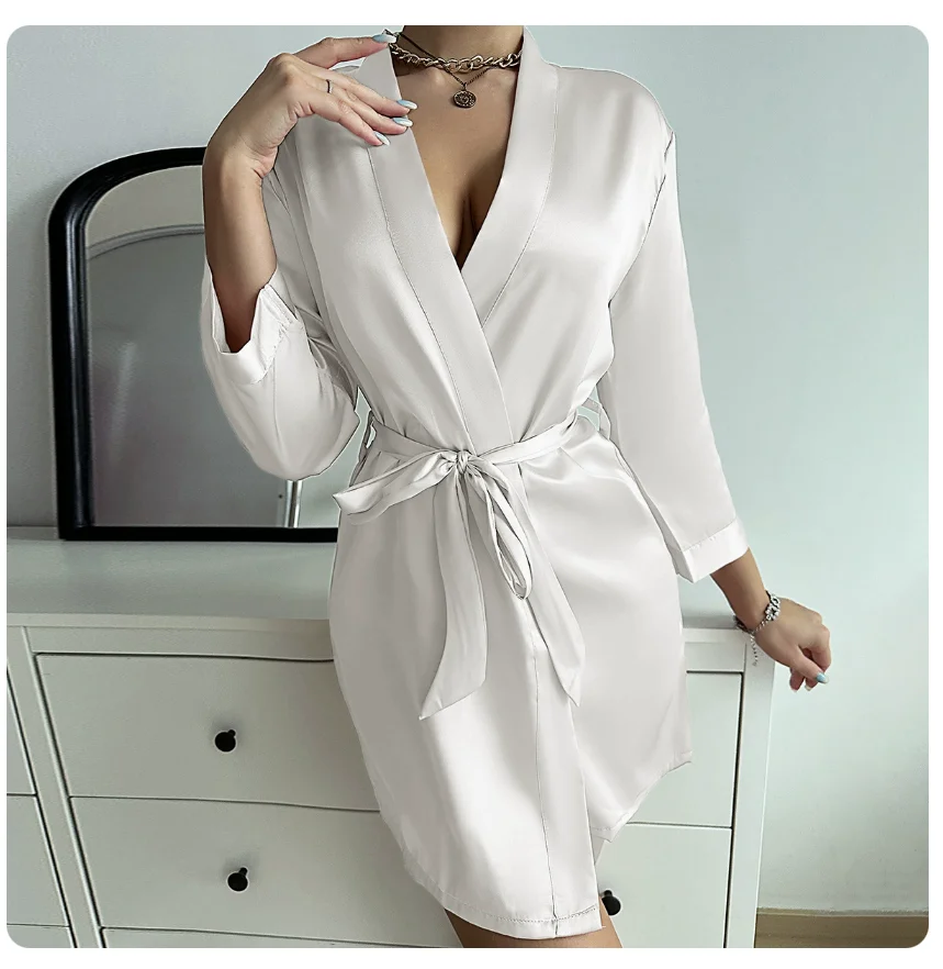 Women’s Short Kimono Robe Silky Satin Bathrobe Bride Bridesmaids Getting Ready Sleepwear Soft Nightgown