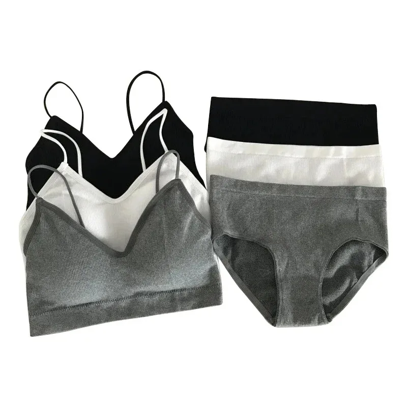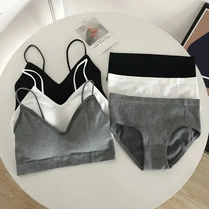 Women’s Sports Bra Set Underwear Bra Korean Style Push Up No Steel Ring Bra Sexy Tube Top High Elastic Panty Set