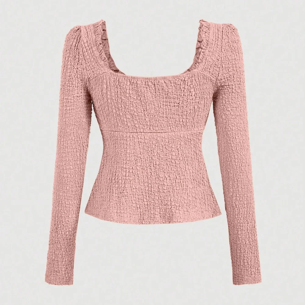 Bring soft elegance to your spring wardrobe with this Women’s Sweetheart Neck Long Sleeve T-Shirt, inspired by classic French style. Designed with a flattering sweetheart neckline and a slim, fitted silhouette, this plain long sleeve top offers a clean and graceful look for everyday wear.