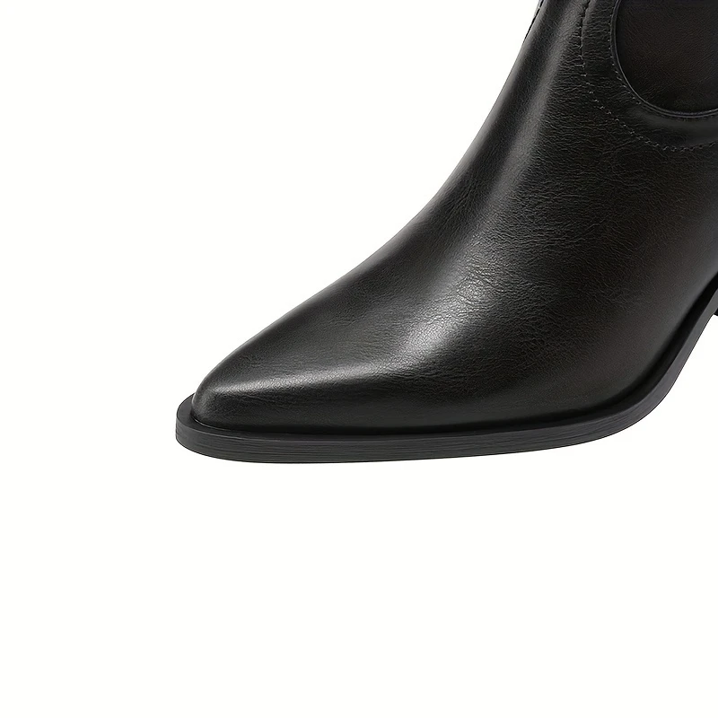 Women’s Western Mid calf Pointed Head Large Denim Embroidered Flame High Heels Over Knee Gothic Boots